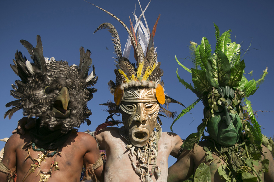 Boruca men wearing masks chase a bull through the streets as part of festivities on January 2, 2016 in Boruca, Costa Rica. The El Juego De Los Diablitos, (Dance of the Little Devils) is one of the most important traditional festivals in Boruca culture, and dates back 400 years to the Spanish conquest. Local men wearing elaborately carved wooden masks and representing devils chase a man dressed as a bull, which symbolize the Spanish. The Boruca are an indigenous community of around 2,500 people living on a reserve in the Puntarenas Province in southwestern Costa Rica.Dan Kitwood / Getty