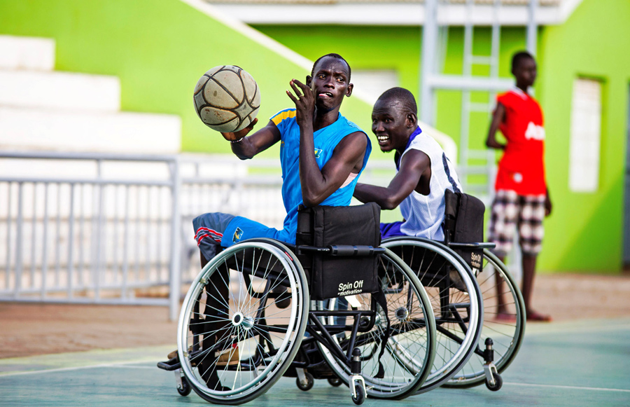 Members of the South Sudan Wheelchair Basketball Association (SSWBA) during a weekly training session at the Basketball Stadium in Juba, South Sudan, on May 17, 2016. The SSWBA, created after South Sudan's independence in July 2011, was formed by around 20 members, most of them war victims who lost their legs due to landmines and bullet wounds. The association wants to expand their activities and organize tournaments around the country and compete in international events, such the Paralympics. The SSWBA has only 15 basketball wheelchairs donated by the International Committee of the Red Cross.Albert Gonzalez Farran / AFP / Getty