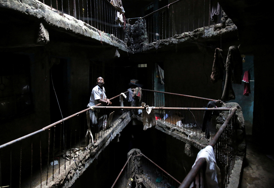 A man stands in a building earmarked for demolition in the Mathare neighbourhood of Nairobi, Kenya, on May 17, 2016. Kenyan authorities tore down a badly built residential block in the district on Tuesday, one of more than 250 shoddy buildings that could now face demolition after a six-story structure collapsed this month, killing 51 people.Goran Tomasevic / Reuters